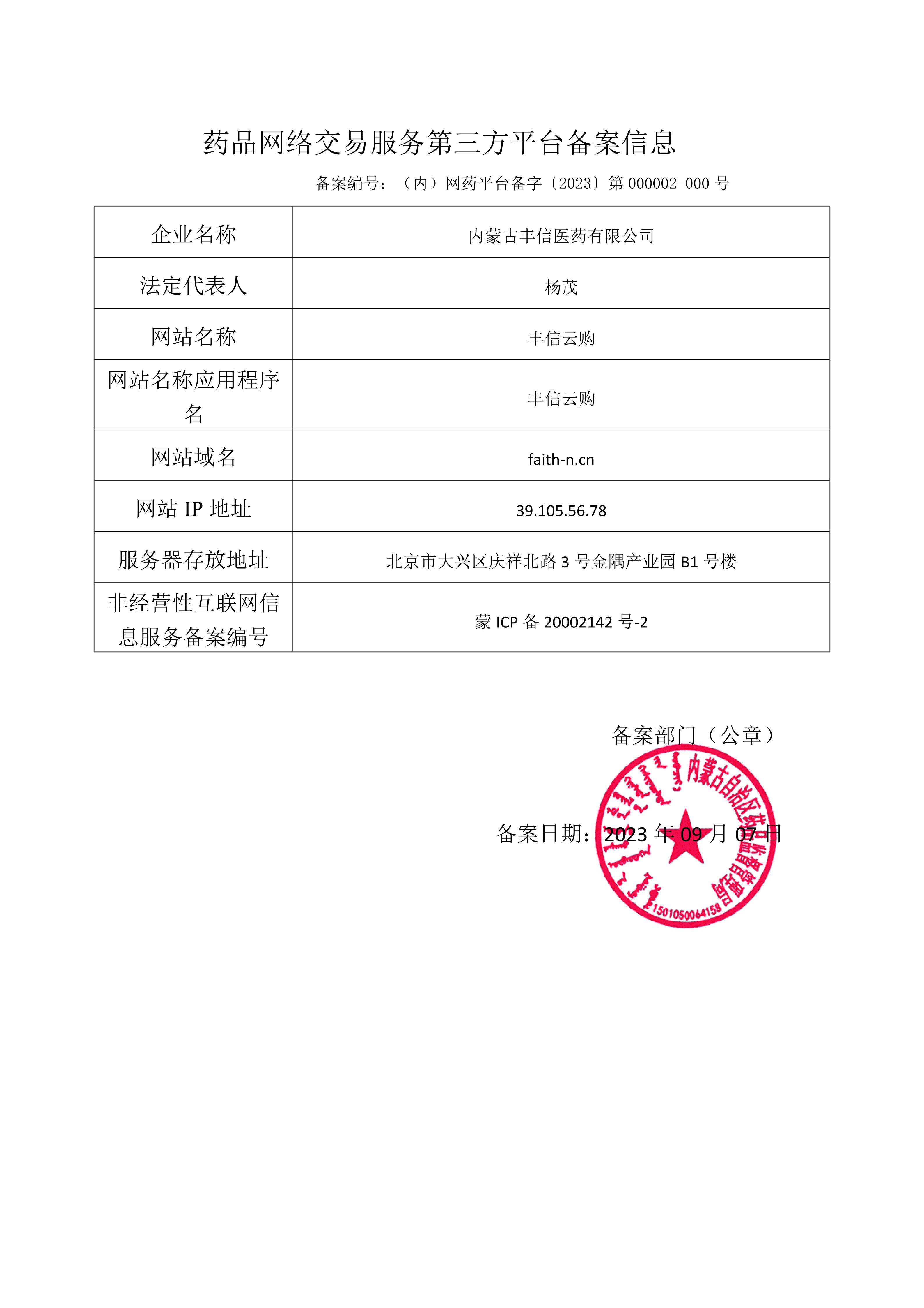 药品网络交易第三方平台备案凭证